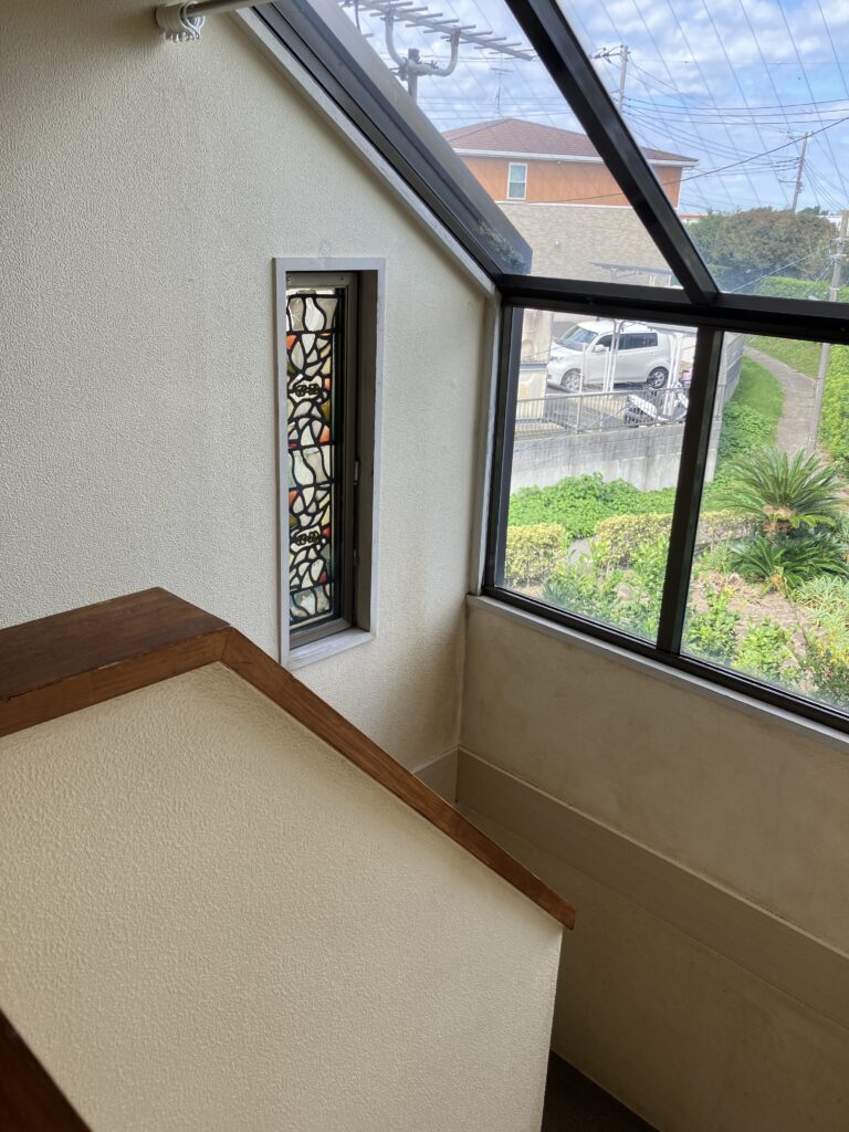 ★玄関ホール吹き抜けで明るいエントランス ★階段の大きな窓越しに見える館山湾 ★ゆったりリビングから出入りできる広々ウッドデッキ(BBQできます)★二階の洋室にはおしゃれなフラワーボックス付き窓有り!